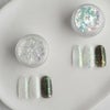 角度や光の当たり方、ベースカラーによってキラキラと色が変わる不思議なオーロラフレーク。