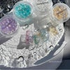 透明な水滴のように輝くグリッター入りの半球ネイルパーツ。